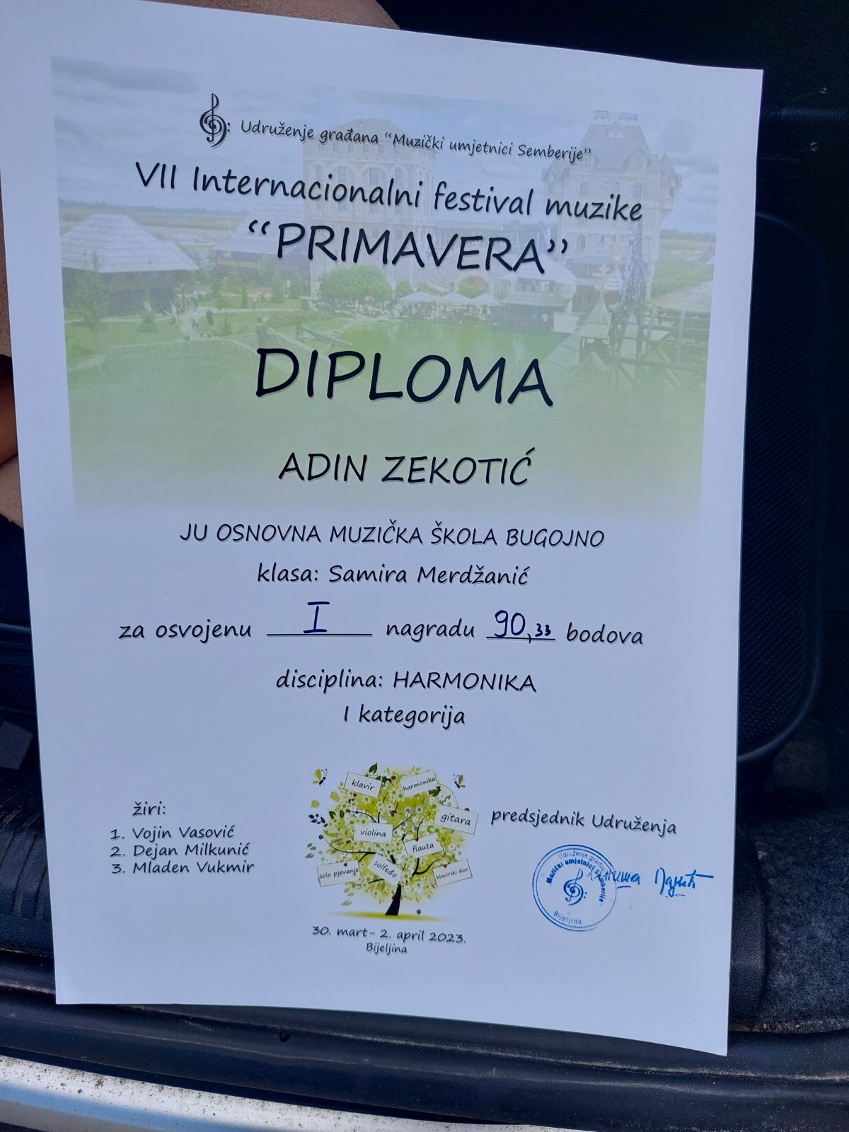 Adin Zekotić osvojio I mjesto na VII Internacionalnom festivalu muzike “Primavera” u I kategoriji harmonike
