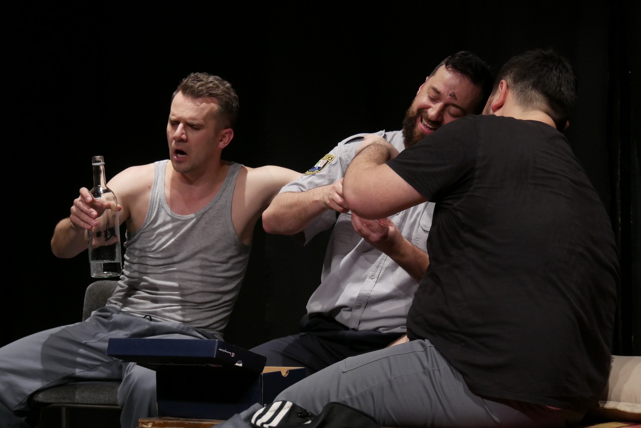 U predstavi igraju: Nusmir Muharemović, Irfan Kasumović, Mirza Mušija. Oni također potpisuju i režiju ove hit komedije.