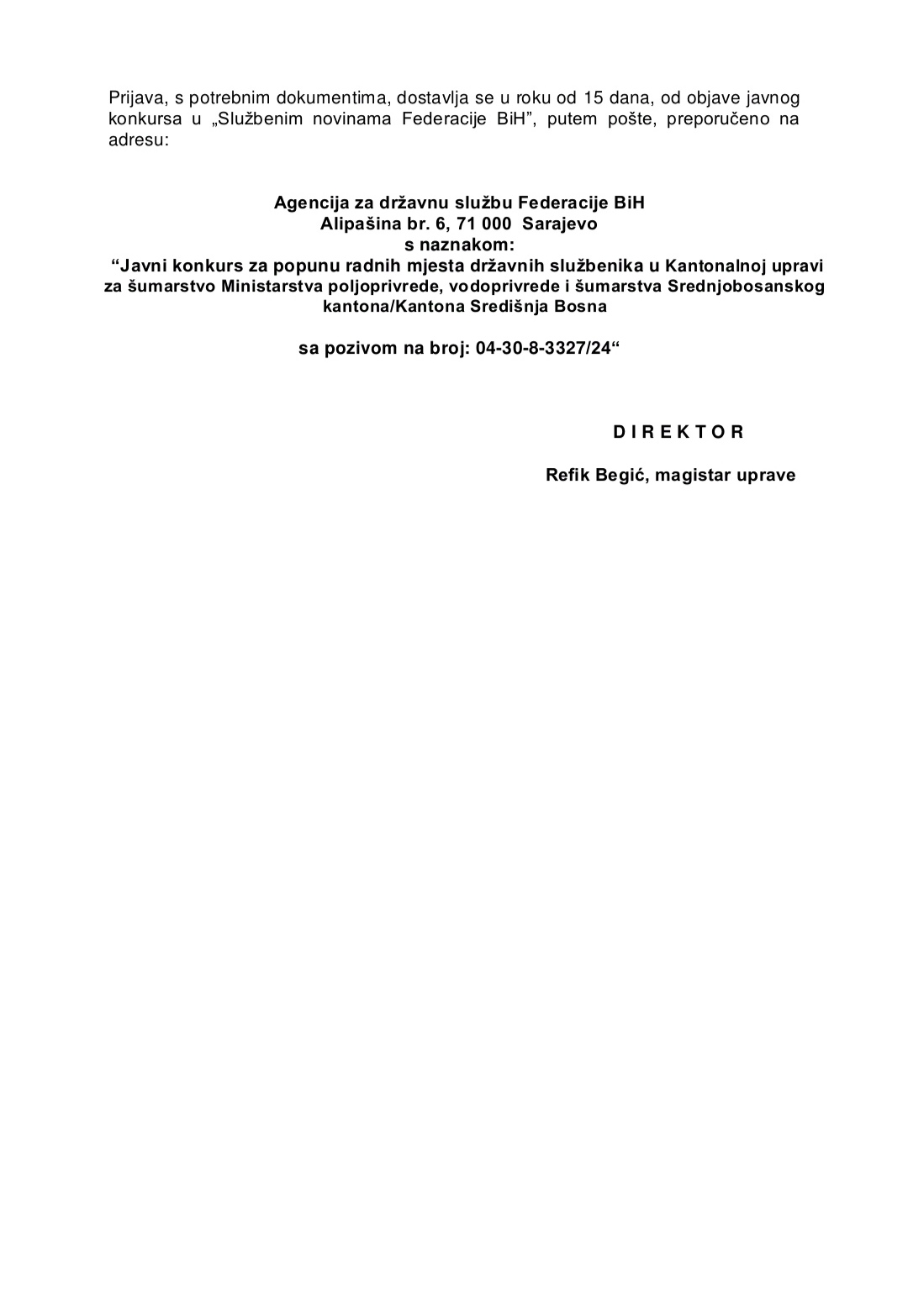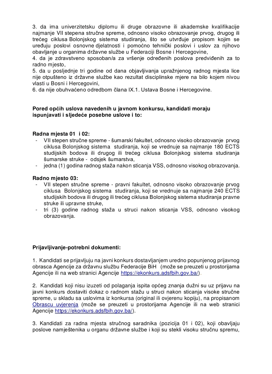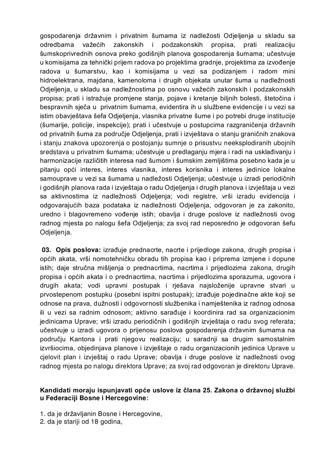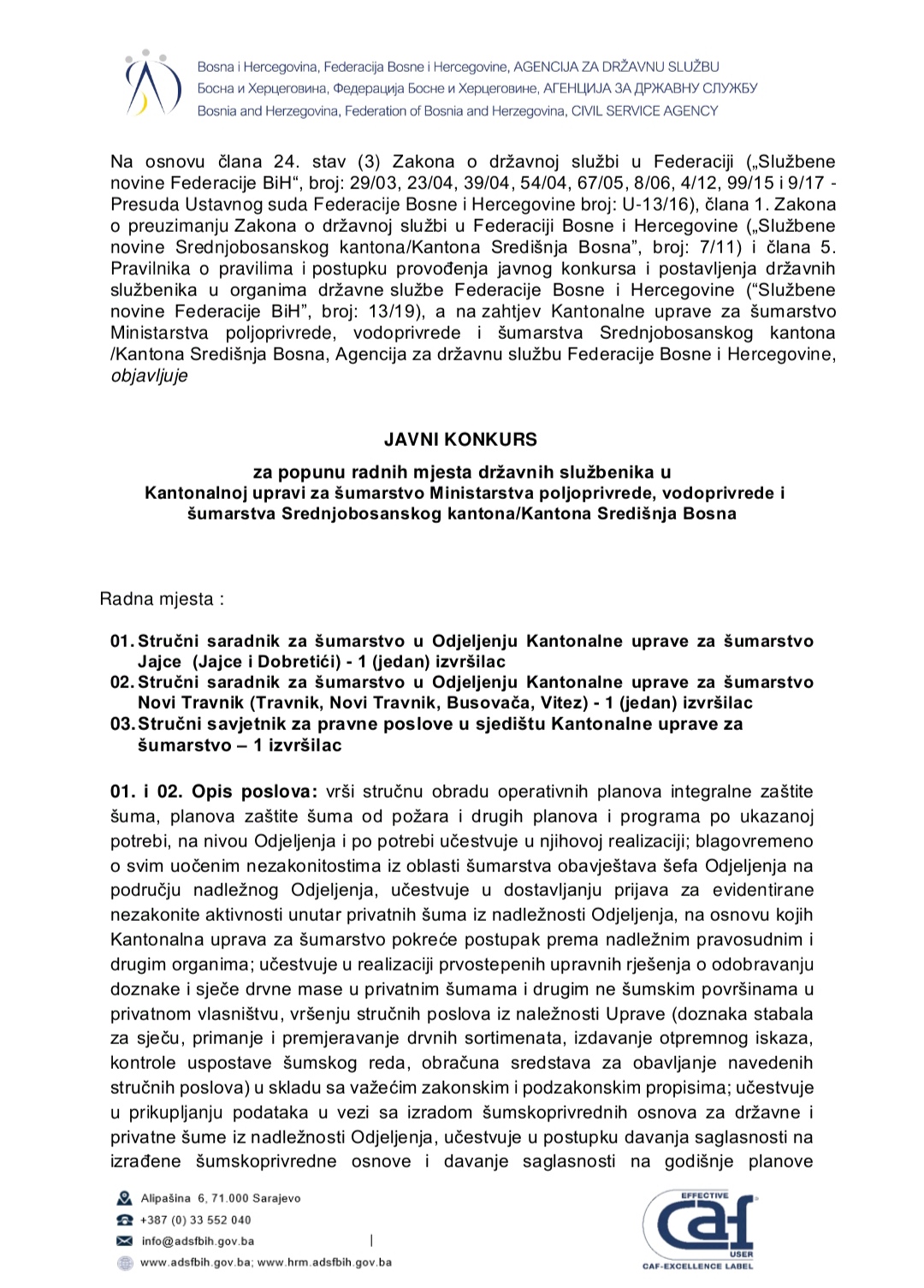 Javni konkurs za popunu radnih mjesta državnih službenika u Kantonalnoj upravi za šumarstvo Ministarstva poljoprivrede, vodoprivrede i šumarstva SBK