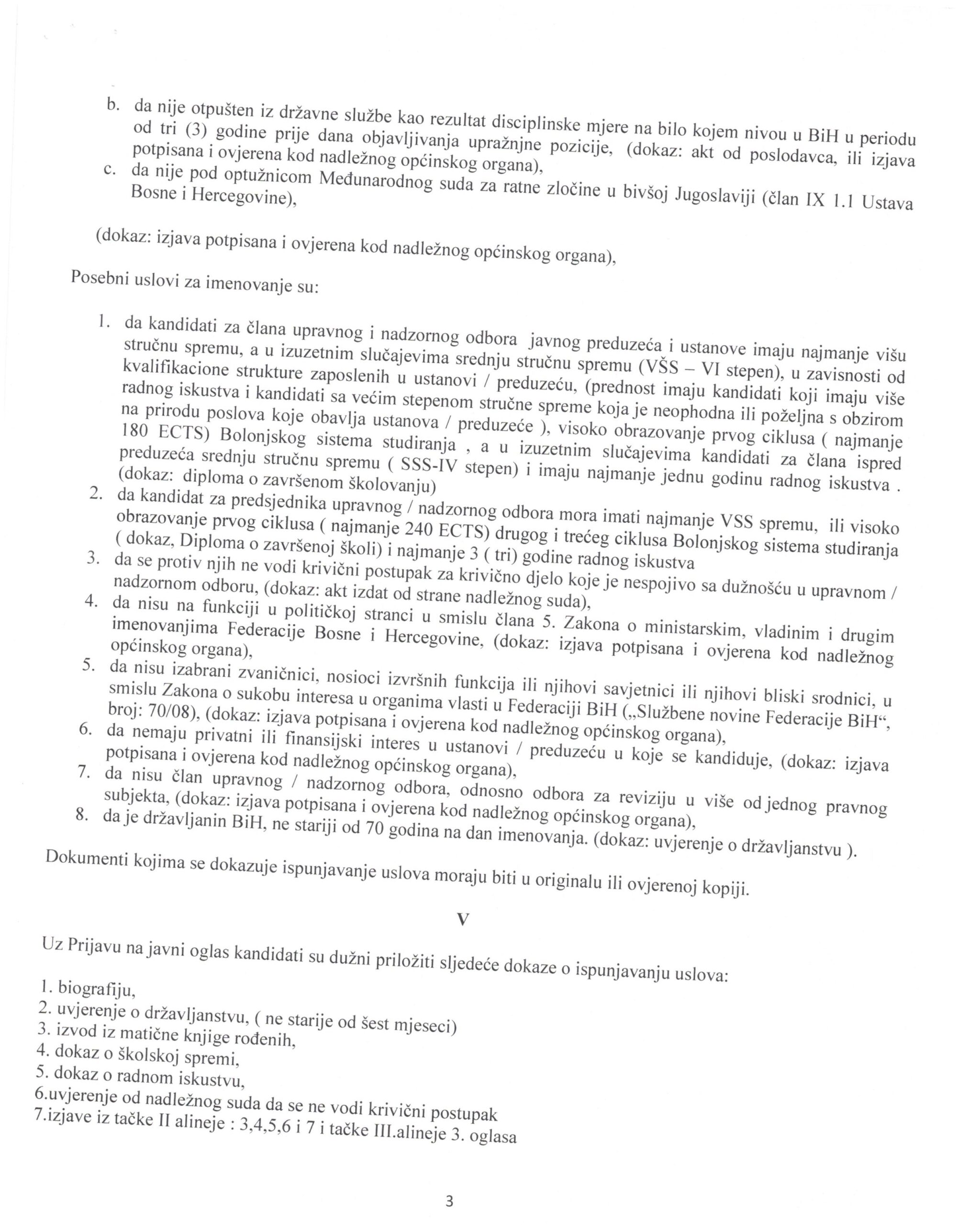 8. da je državljanin BiH, ne stariji od 70 godina na dan imenovanja. (dokaz: uvjerenje o državljanstvu ).