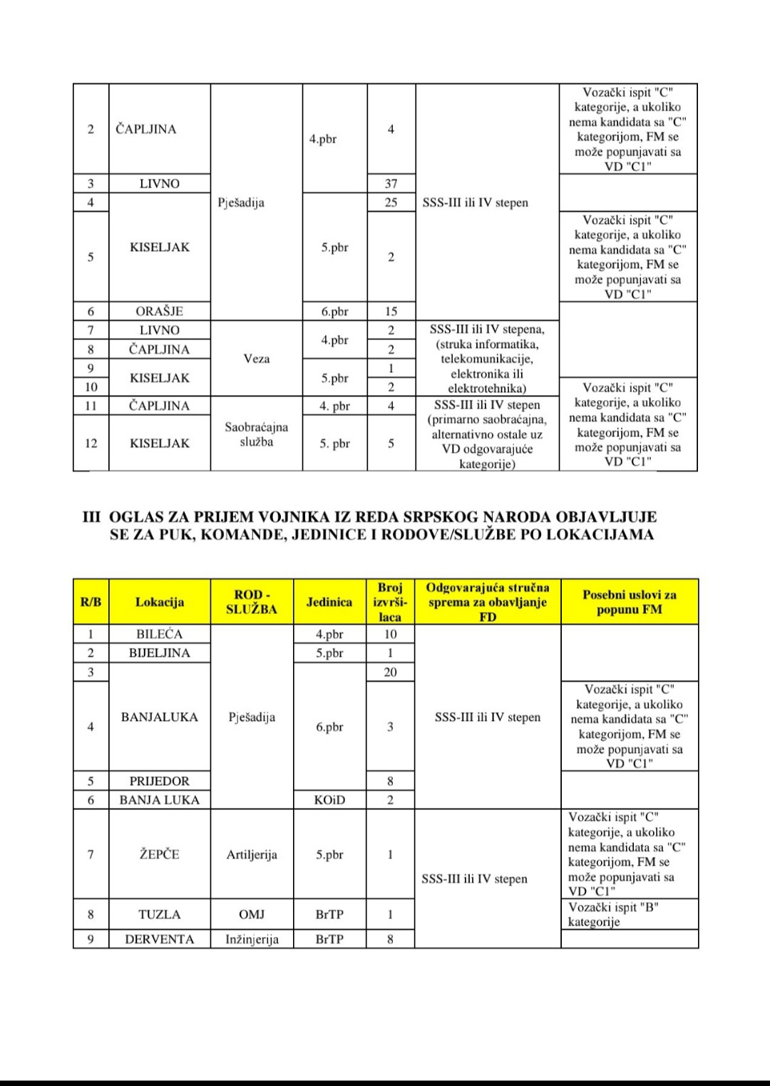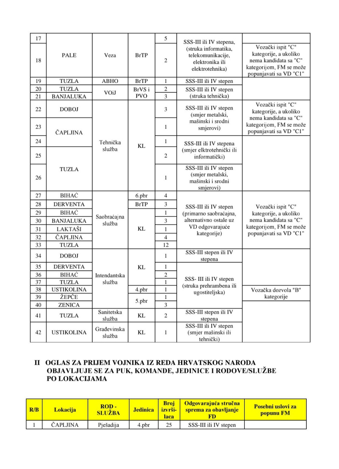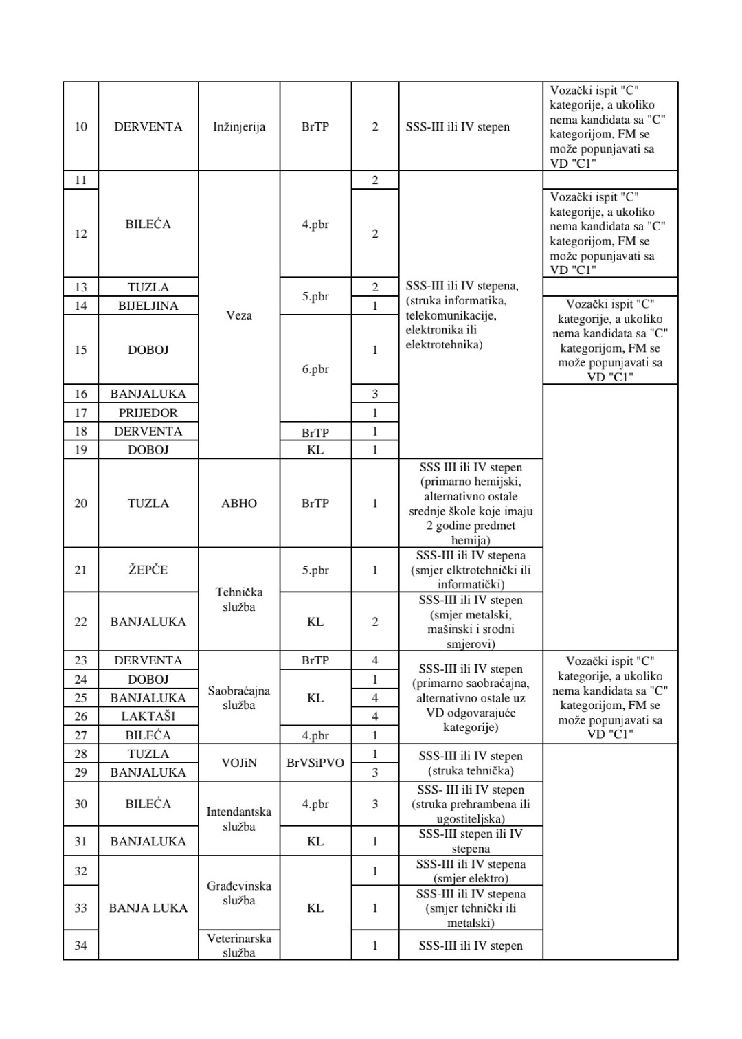 Radi se o formacijskim mjestima u Oružanim snagama BiH koja se popunjavaju kandidatima iz reda sva tri naroda u BiH, kao i iz reda ostalih.