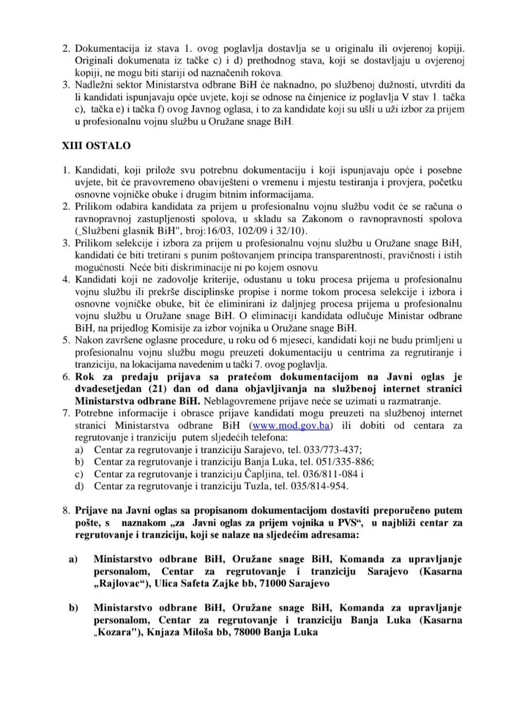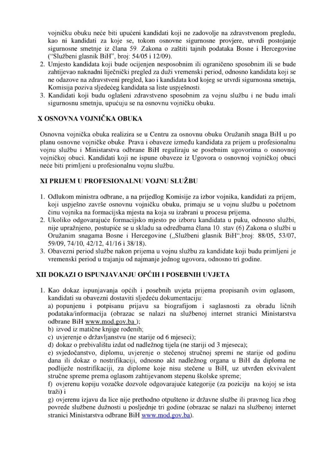 Potrebne informacije i obrasce za prijavu kandidati će moći preuzeti na službenoj internet stranici Ministarstva odbrane BiH (www.mod.gov.ba).