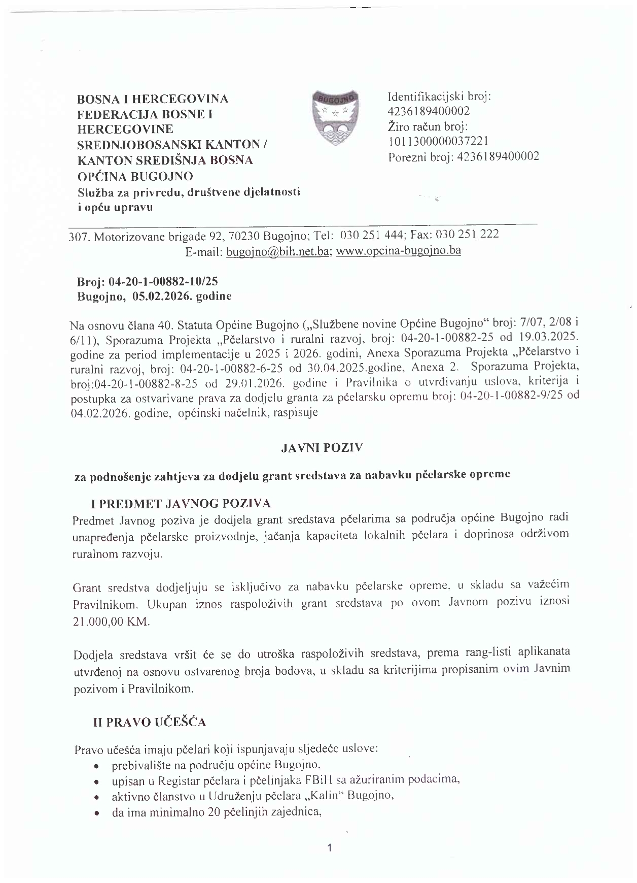 Javni poziv i Pravilnik za pčelare u okviru projekta Pčelarstvo i ruralni razvoj!