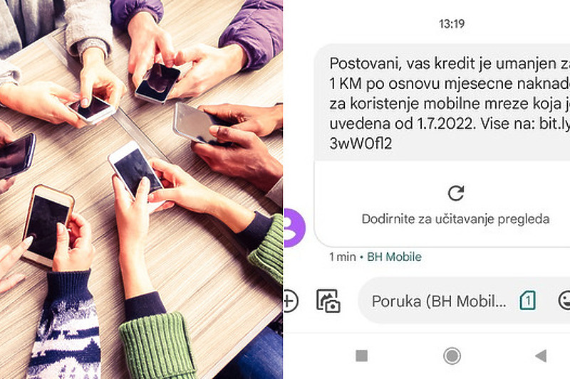 “Poštovani, vaš kredit je umanjen za 1 KM po osnovu mjesečne naknade za korištenje mobilne mreže koja je uvedena 1.7.2022. godine”, glasi automatska poruka BH Telecoma.