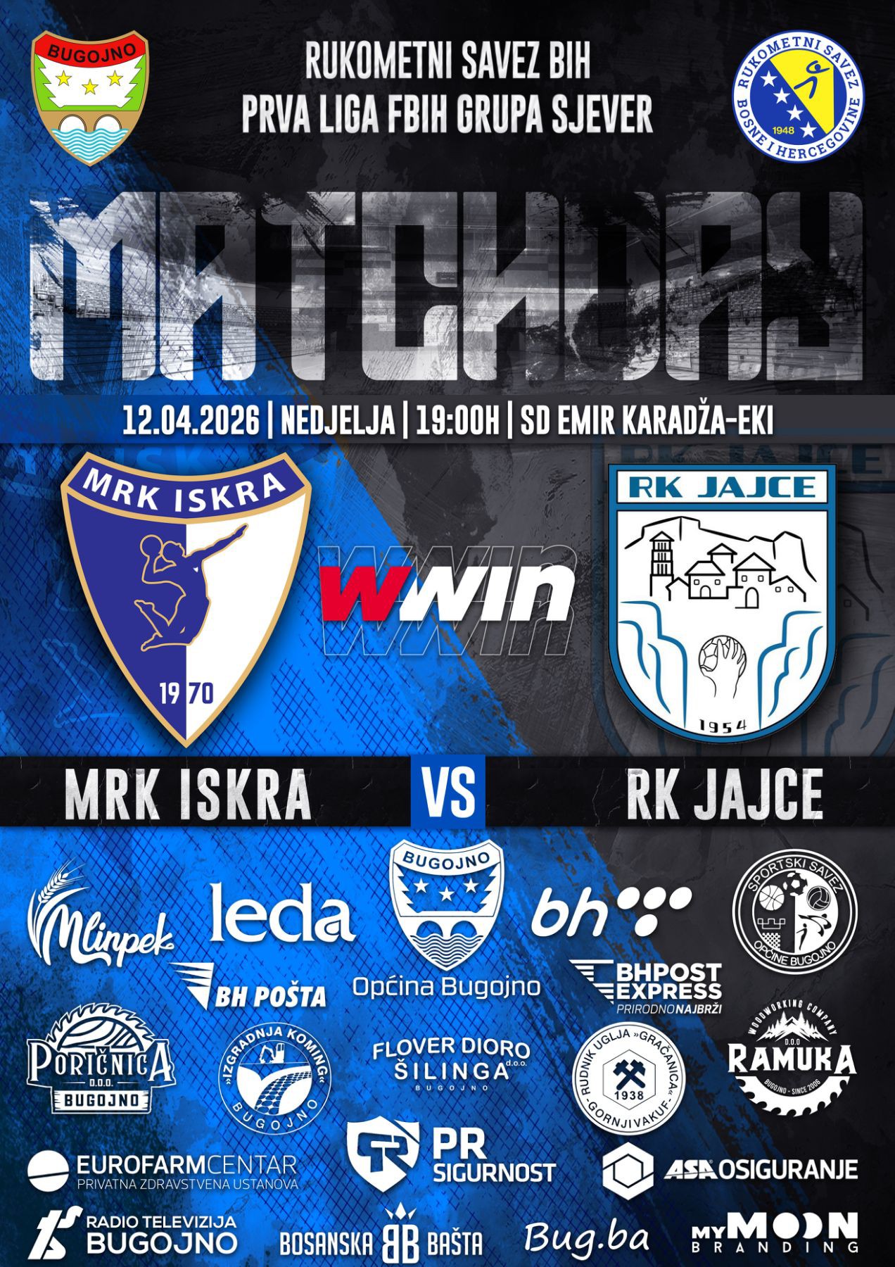 U okviru 18. kola Prve lige – grupa sjever FBiH za rukometaše, u nedjelju 12.04.2026. godine u Bugojnu snage će odmjeriti Iskra i Jajce.