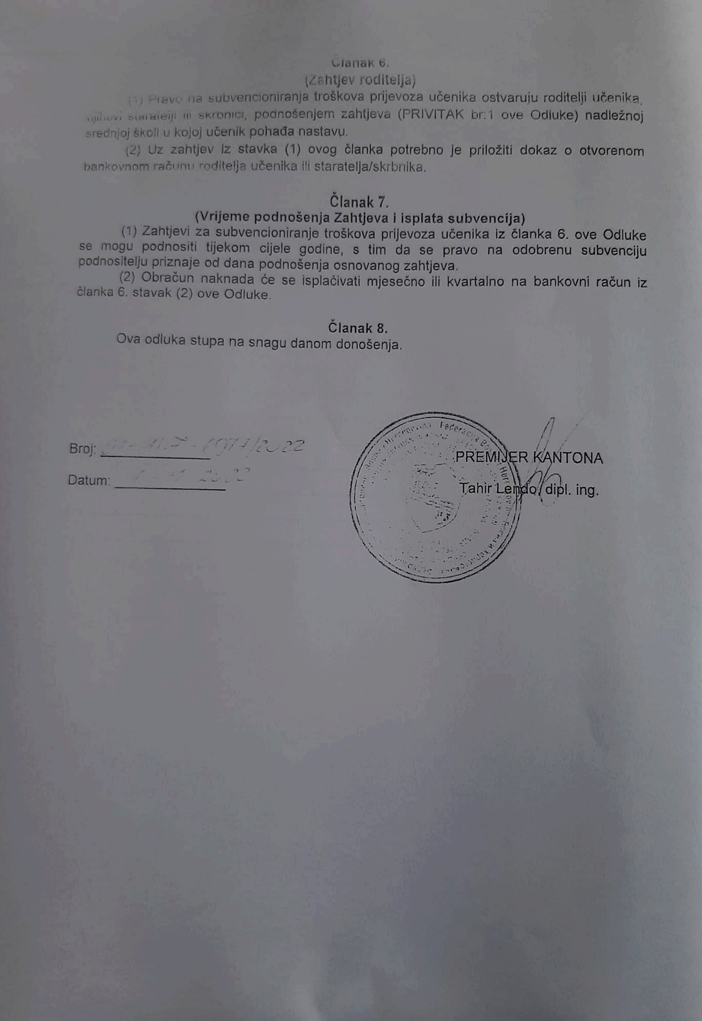 Ministar obrazovanja, nauke, kulture, sporta i mladih SBK Bojan Domić, u četvrtak je nakon održane sjednice Vlade SBK iznio važnu novinu za srednjoškolce sa područja našeg kantona.