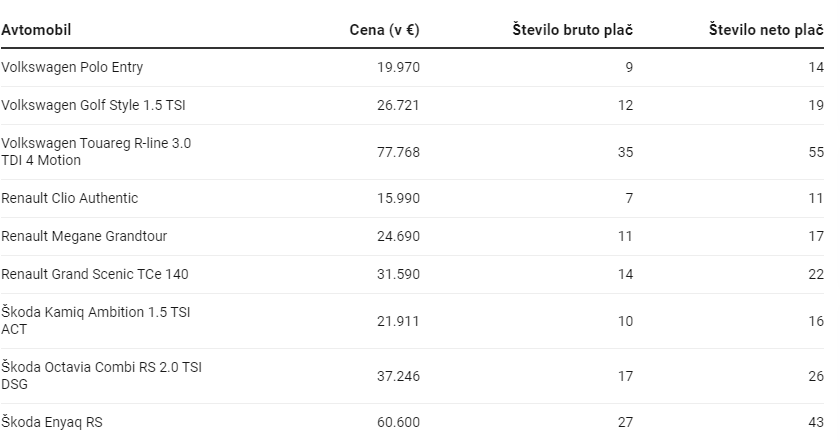 N1 Slovenia nedavno je provjerila cijene nekih od najprodavanijih automobila na slovenačkim cestama i uporedila koliko danas koštaju prosječnih plata.