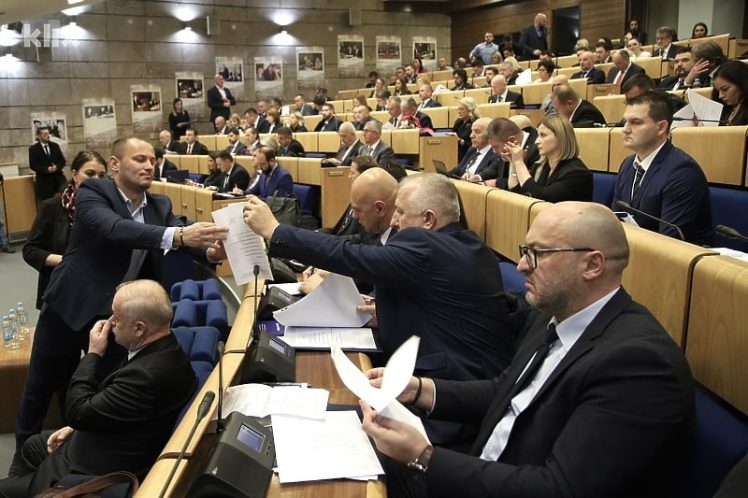 Jučer je konstituisan i Predstvnički dom Parlamenta FBiH. Osmorka je nastojala odmah izabrati i rukovodstvo tog doma i tako pokazati da oni preuzimaju vlast sa HDZ-om. Tako je pokušala spriječiti SDA koja je sa DF-om odlagala nastavak sjednice i planirala da se sjednica nastavi u ponedjeljak da bi u međuvremenu sačekali eventualnu odluku Ustavnog suda BiH koji danas treba donijeti stav po apelaciji Željka Komšić na Schmidtove nametnute odluke.