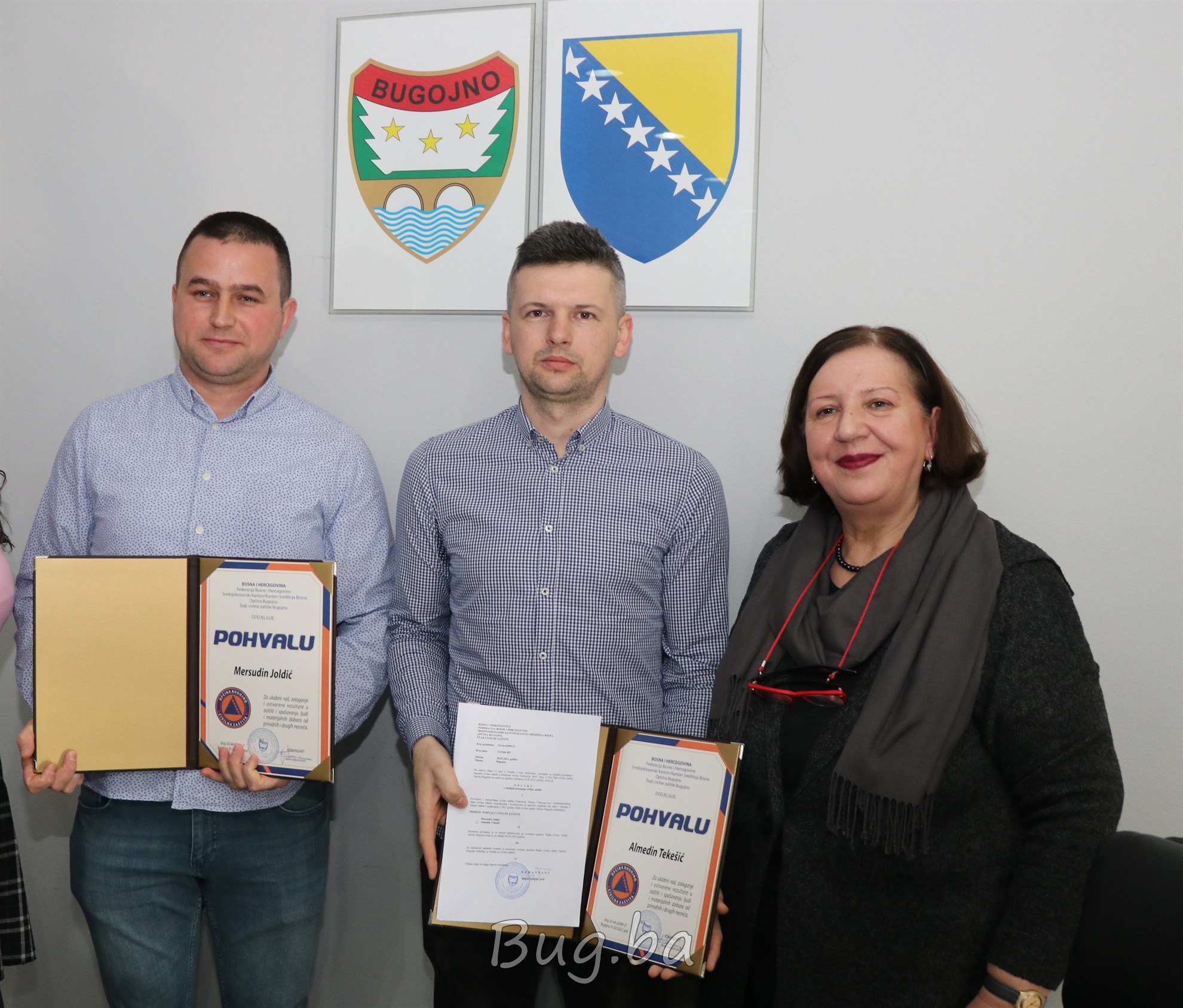 Pismene pohvale civilne zaštite Općine Bugojno uručene su Merzudinu Joldiću i Almedinu Tekešiću.