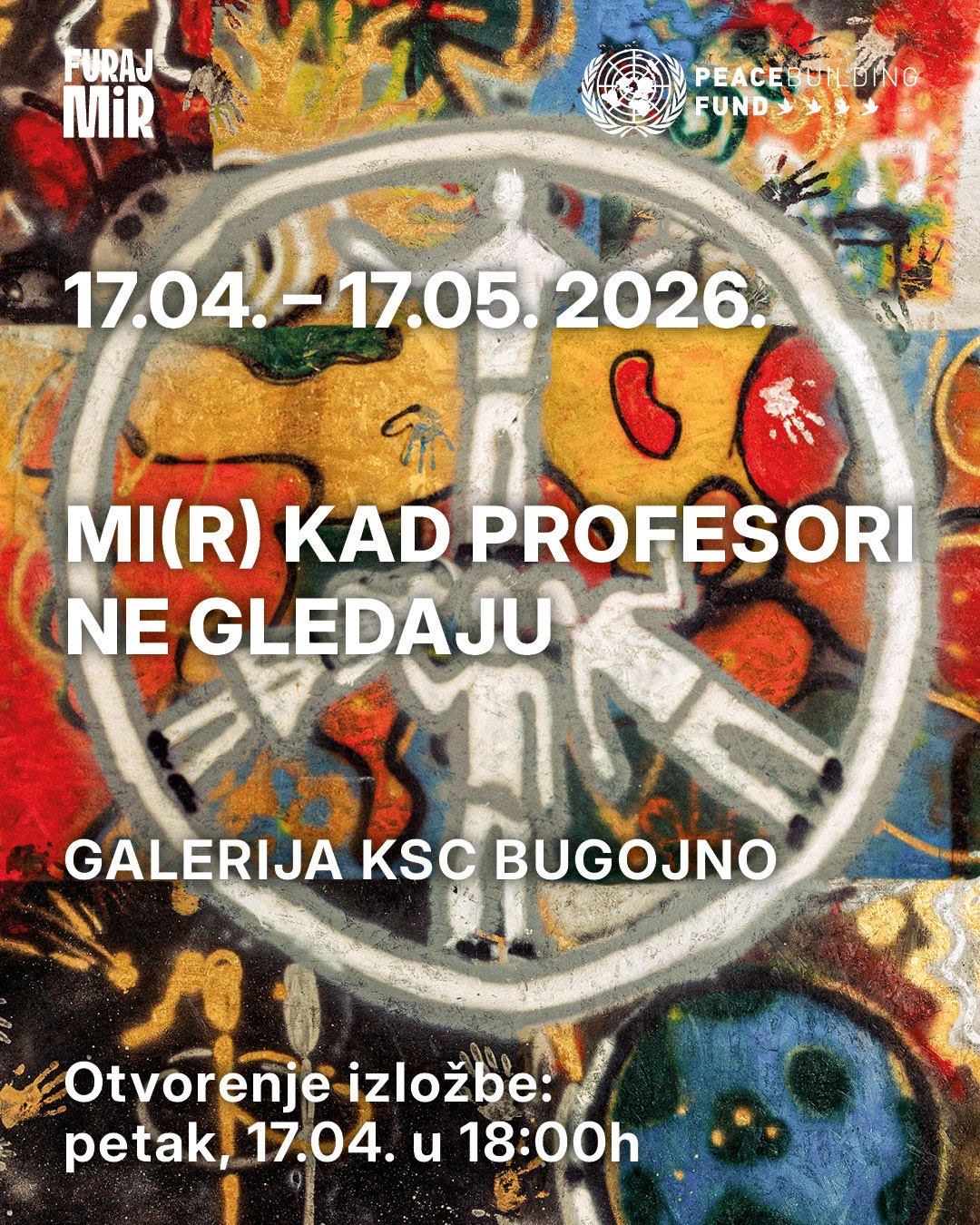 Lokalni tim PeaceUp! Bugojno projekta „Furaj mir” najavljuje otvaranje izložbe „Mi(r) kad profesori ne gledaju”, koja će se održati 17. 4. 2026. u 18:00 sati u Galeriji KSC-a Bugojno.