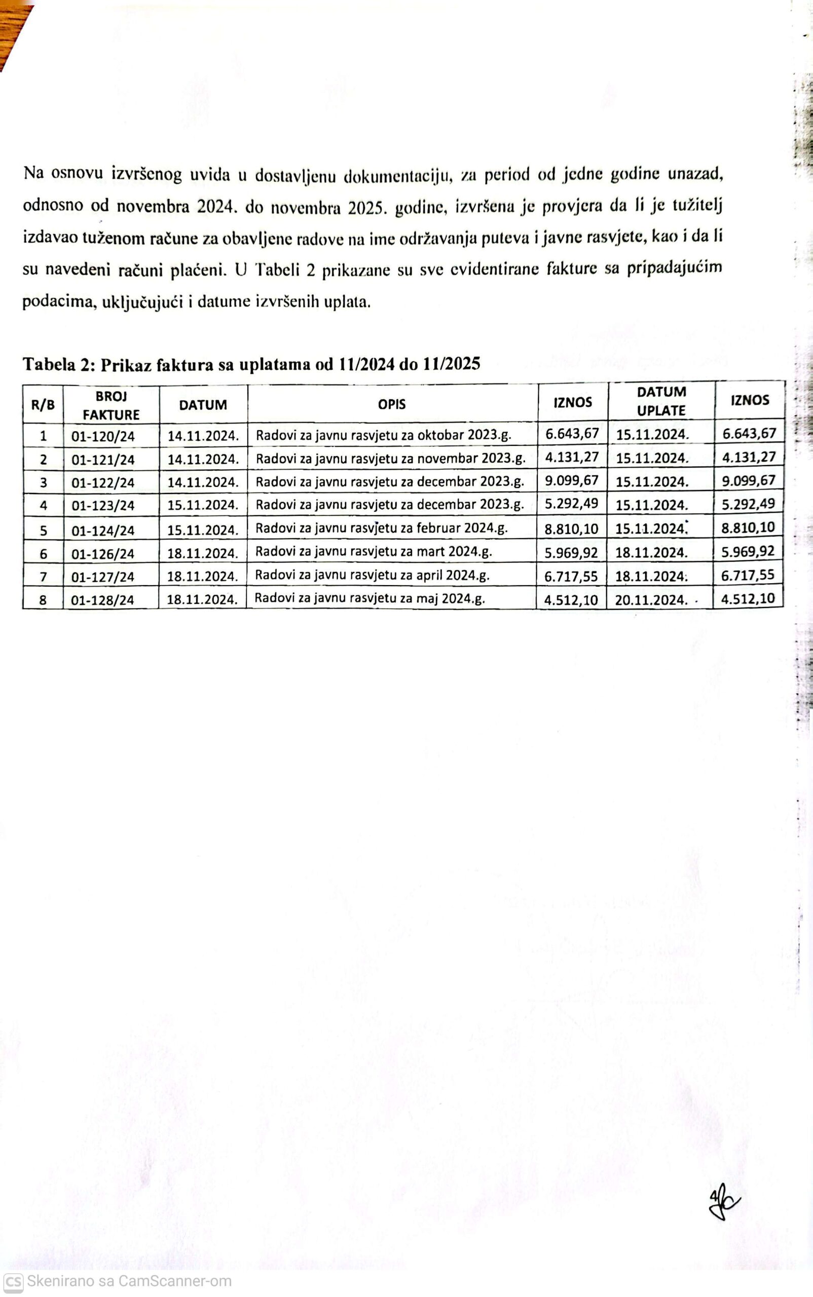 Želim javnost upoznati da sam kao načelnik na ime održavanja puteva i javne rasvjete izvršio JP za stambeno komunalne djelatnosti i lokalne puteve sve dostavljene račune odnosno fakture u periodu novembar 2024. – novembar 2025. godine, što je potvrdio i Nalaz stalnog sudskog vještaka u ovom predmetu.