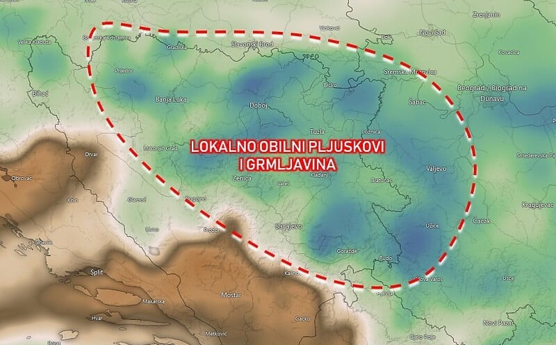 Danas se u BiH očekuje umjereno do pretežno oblačno vrijeme sa mjestimičnom kišom i lokalnim pljuskovima. U Hercegovini sunčano uz promjenljivu oblačnost. Vjetar u Bosni slab do umjeren sjeverni i sjeveroistočni, a u Hercegovini umjerena bura. Jutarnja temperatura zraka od 10 do 16, na jugu do 18, a dnevna od 14 do 20, na jugu do 26 stepeni.