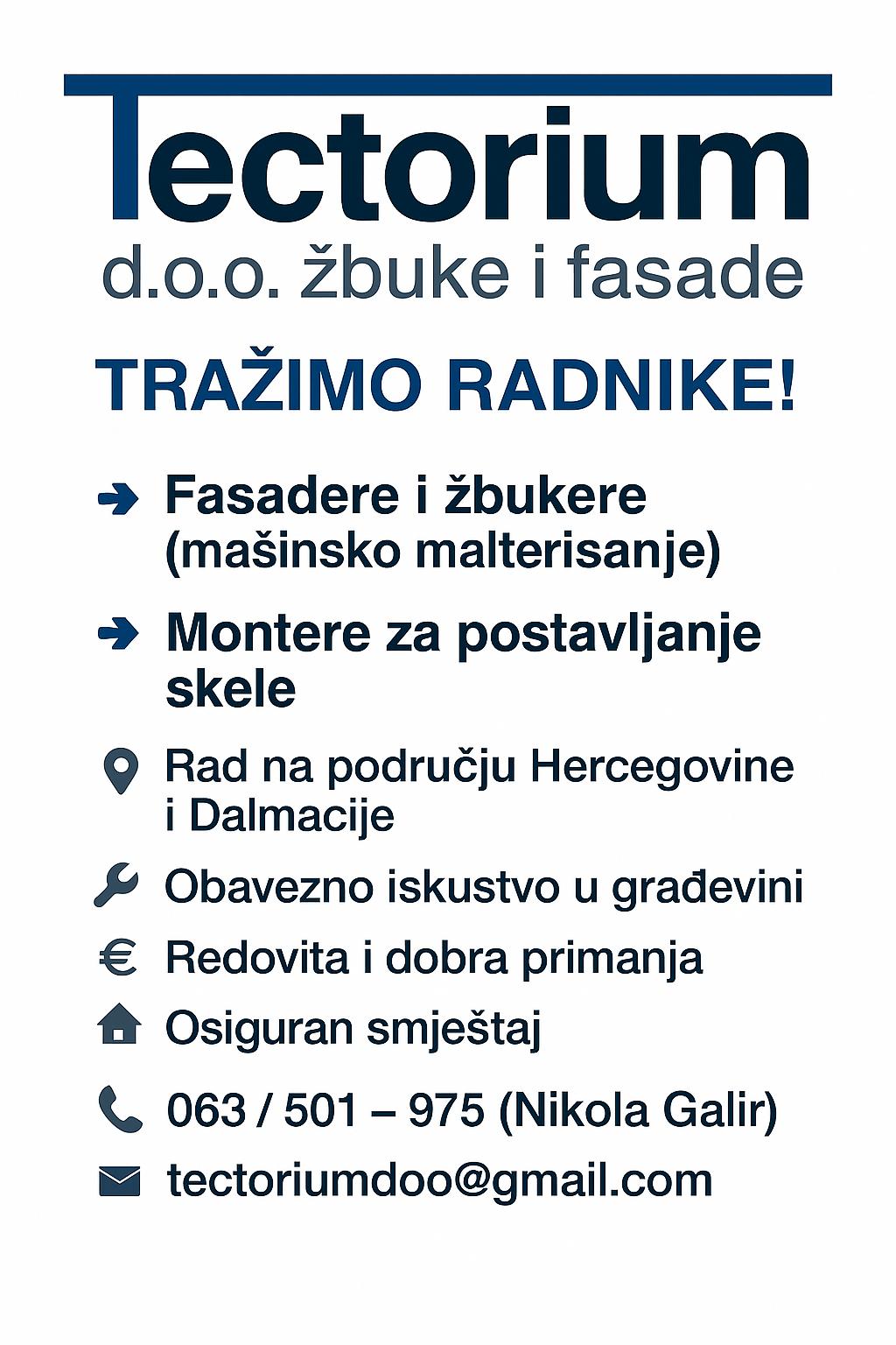 Oglas za posao: Tectorium d.o.o. Tomislavgrad – Tražimo pojačanje!