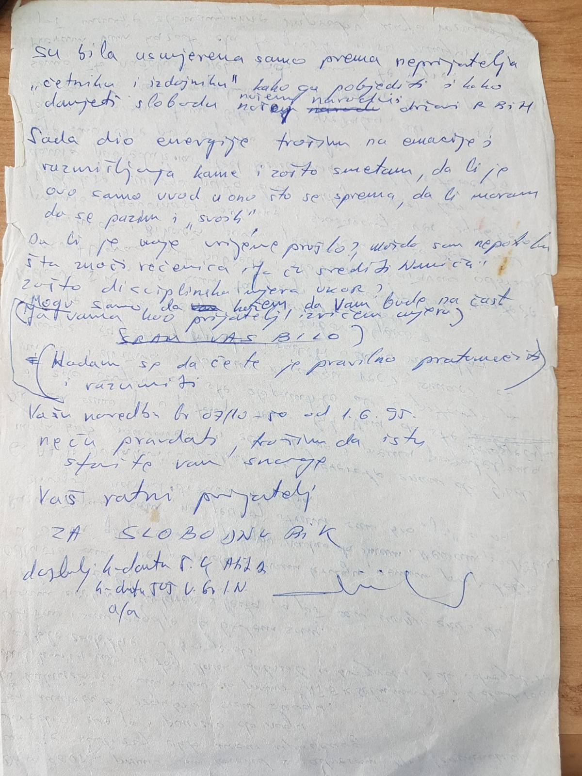 Tačno, u svemu tome bilo je i grešaka, ali one su kao što reče naš predsjednik gospodin Alija Izetbegović kao rupe u siru, samo što nažalost neko vidi samo te rupe. Moram vam kazati da te greške nisu namjerne, a još manje zlonamjerne, naprotiv moja razmišljanja su bila usmjerena samo prema neprijatelju „četniku i izdajniku“, kako ga pobijediti i kako donijeti slobodu našem narodu, našoj državi R BiH. Sada dio energije trošim na emocije i razmišljanja kome i zašto smetam, da li je ovo samo uvod u ono što se sprema, da li moram da se pazim i „svojih“..