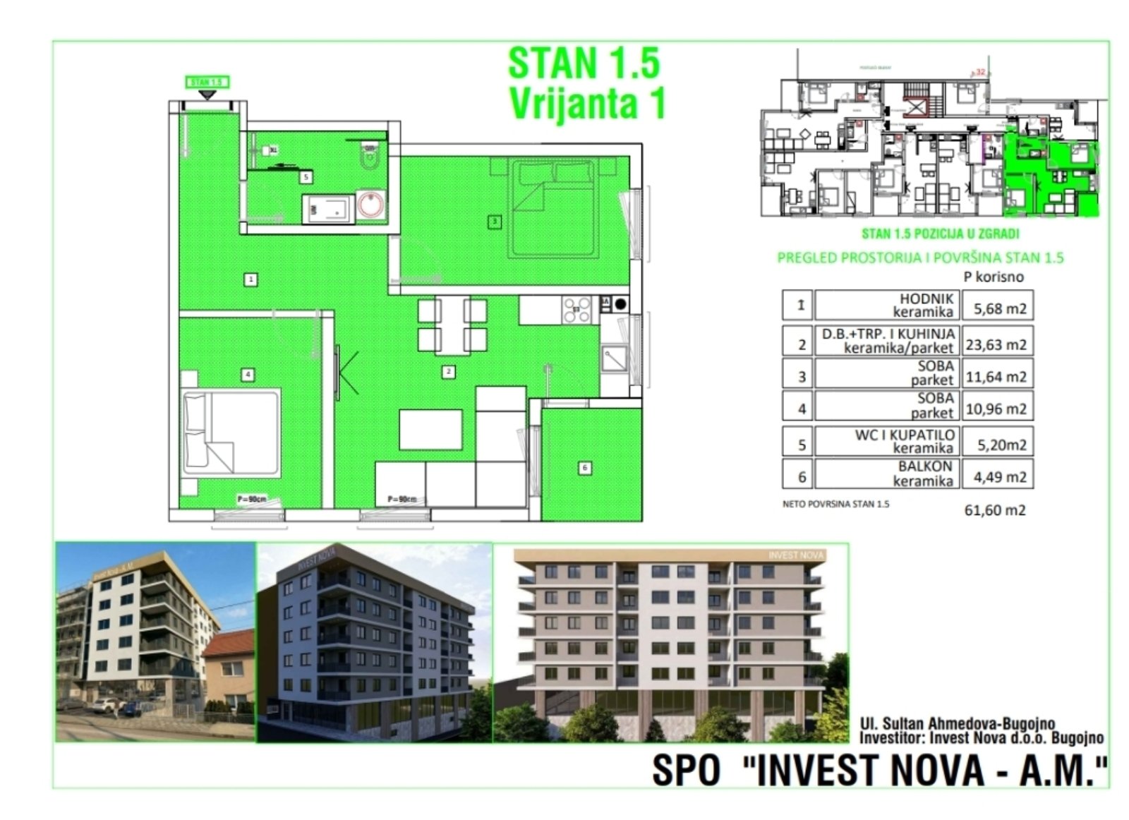 Bugojanska firma Invest Nova doo Bugojno ulazi u novu investiciju – početak radova na izgradnji modernog poslovno-stambenog objekta na atraktivnoj adresi Sultan Ahmedova 46, srce općine Bugojno.