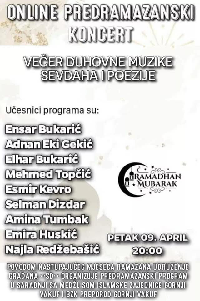 Pratite online predramazanski koncert: Večer duhovne muzike sevdaha i poezije