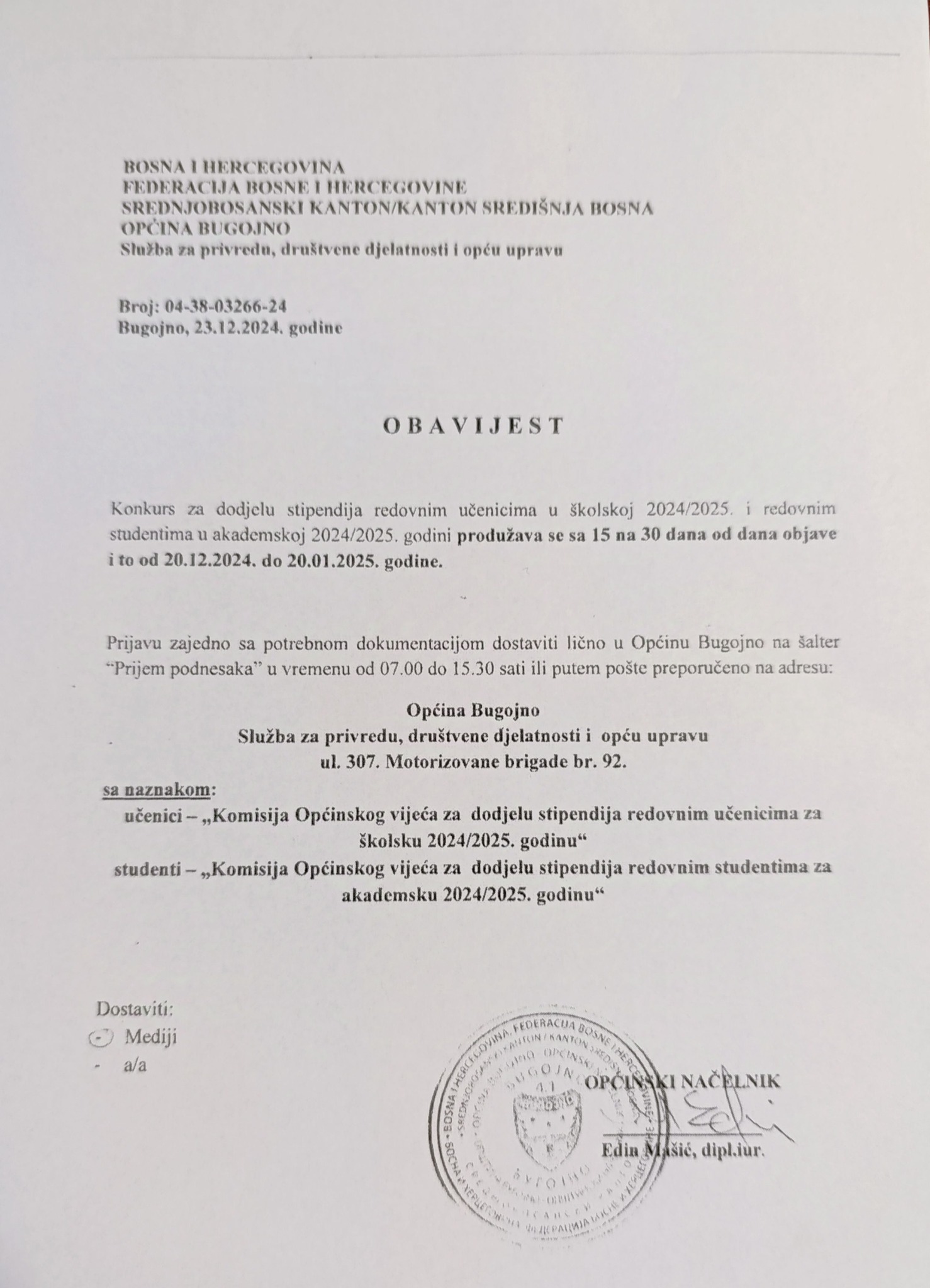 Produžen rok prijave Konkursa za stipendije učenicima i studentima