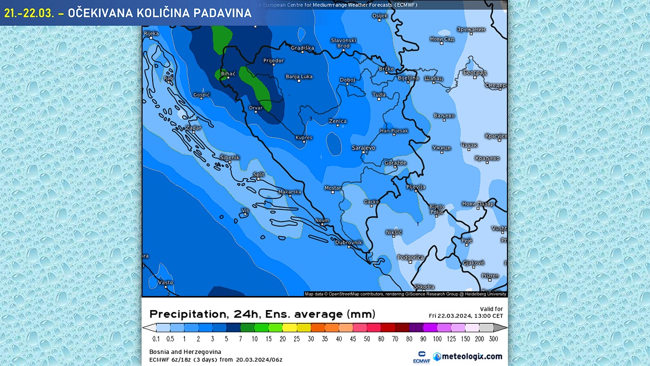 “Od noći na petak pa do petka poslijepodne uz naoblačenje kiše će biti u većem dijelu zemlje. Na višim planinama lokalno može biti malo snijega. Krajem dana padavine prestaju, a navečer će dolaziti do postepenog smanjenja oblačnosti. Najviše padavina u Krajini, većinom 3 do 7 mm, a najmanje u Hercegovini gdje tokom petka moguće da bude dužih sunčanih perioda”, navodi se u prognozi.