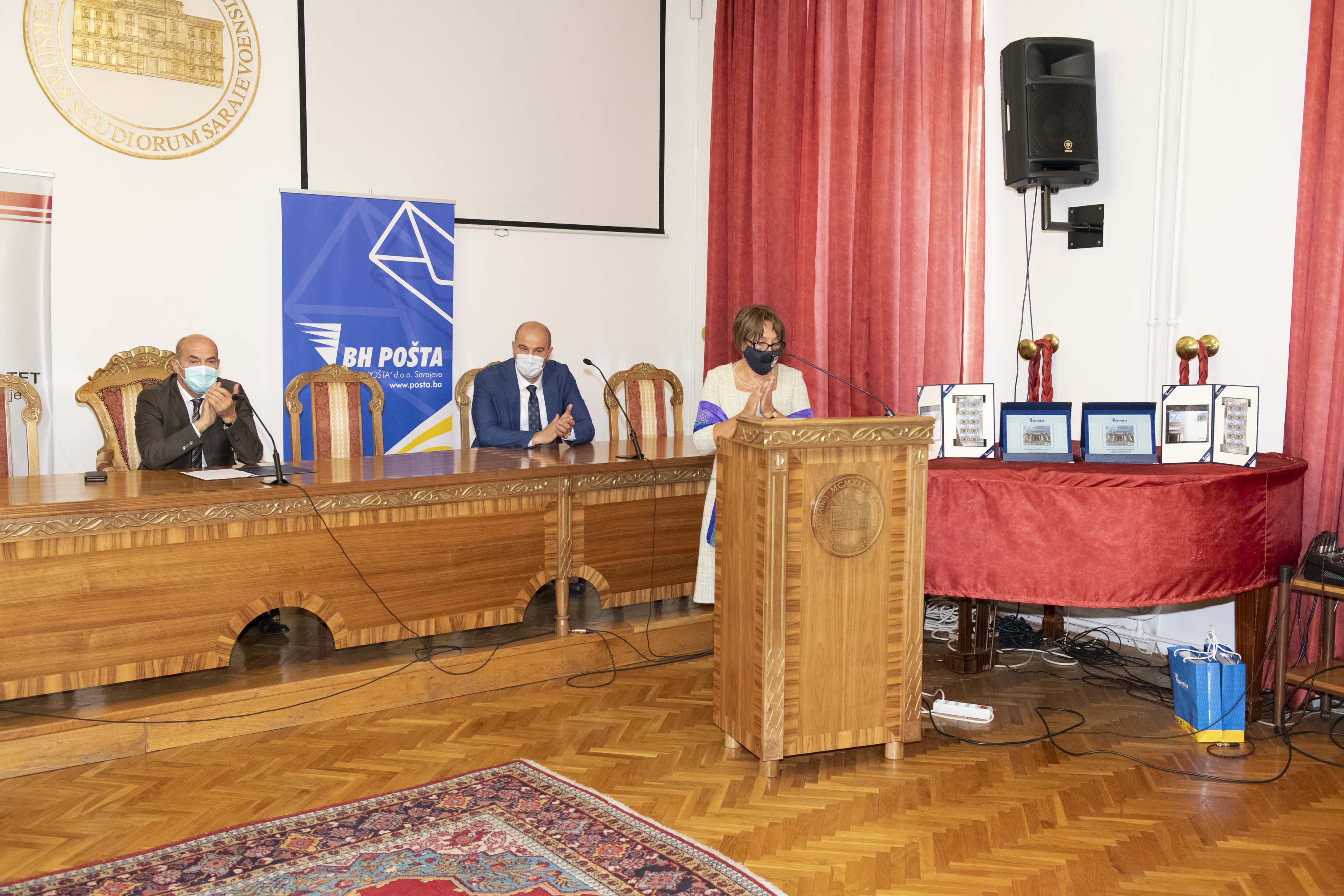 – Ovakvi događaji su jako važni ne samo za Pravni fakultet i Univerzitet u Sarajevu nego i za širu društvenu zajednicu, jer značaj poštanske marke nije samo u njenoj nominalnoj i upotrebnoj vrijednosti u plaćanju poštanskih usluga, nego prije svega ona predstavlja nacionalnu i kulturnu vrijednost jedne države, te se na taj način najbolje promovira njena nacionalna baština. Zato sam ponosan što se na jednoj od njih odnedavno, tačnije od 23. avgusta 2021. godine, nalazi i Pravosudna palata kao jedan od simbola ovog grada i države Bosne i Hercegovine u kojoj je smješten i Pravni fakultet Univerziteta u Sarajevu, kao najznačajnija i najbolja institucija u oblasti pravnog obrazovanja u Bosni i Hercegovini – kazao je rektor prof. dr. Rifat Škrijelj.