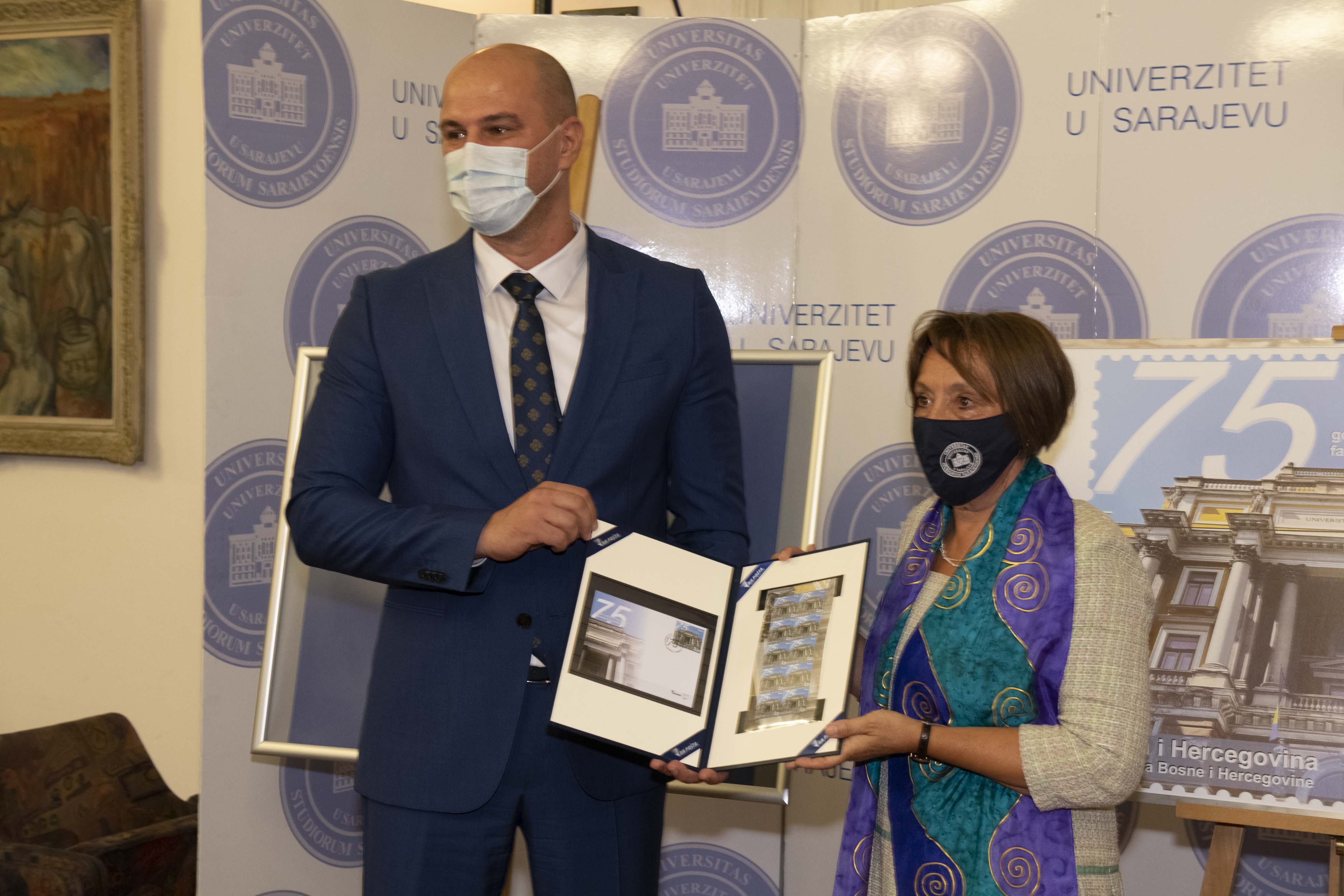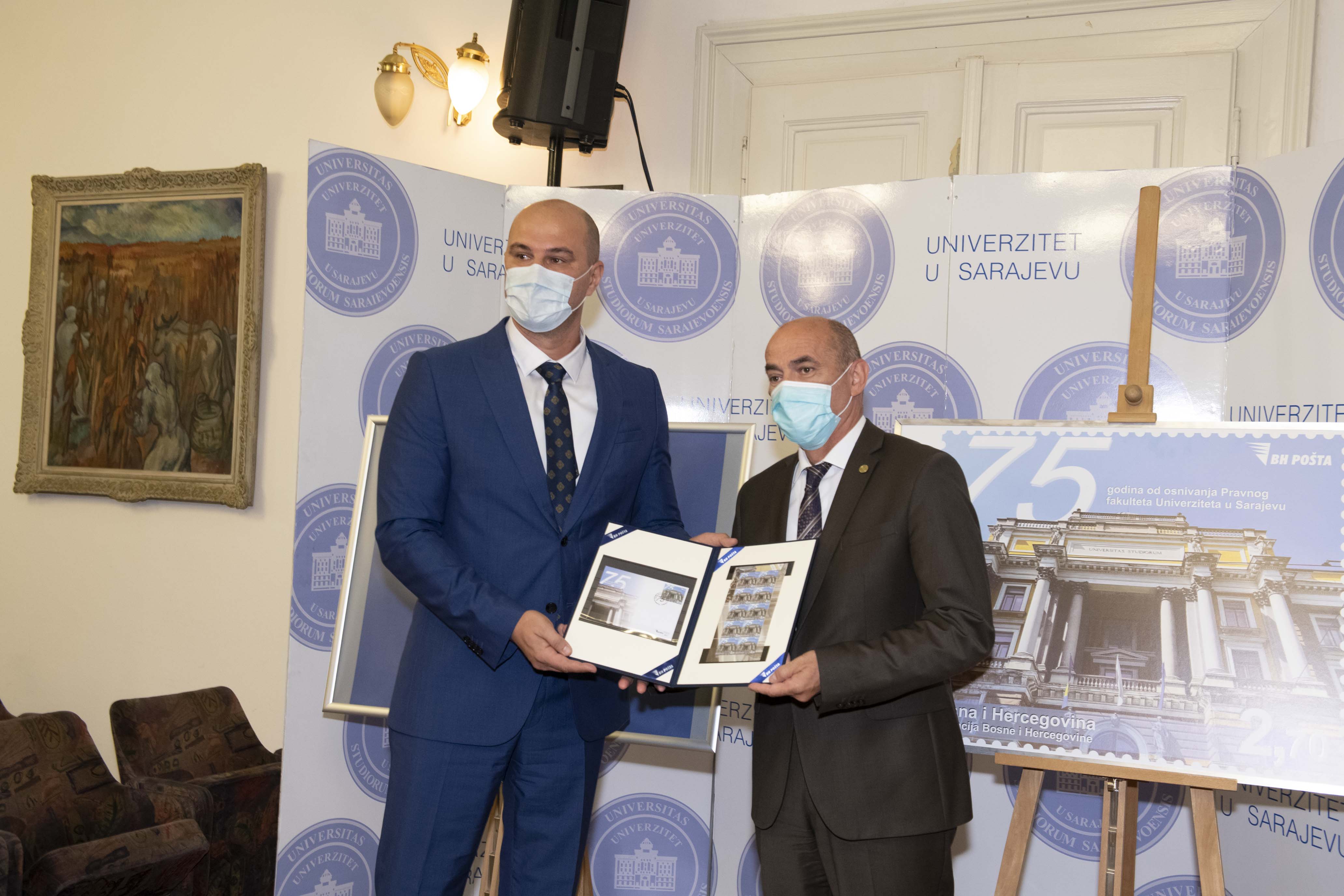 – Javno preduzeće BH Pošta u povodu 75. godišnjice Pravnog fakulteta izdalo je prigodnu poštansku marku. Na taj način željeli smo, i simbolički i praktično, dokumentirati ovaj važan trenutak i odati priznanje Pravnom fakultetu za veliki naučni i stručni doprinos i za prepoznatljivu društvenu ulogu – kazao je generalni direktor BH Pošte, mr.sci. Mirsad Mujić.