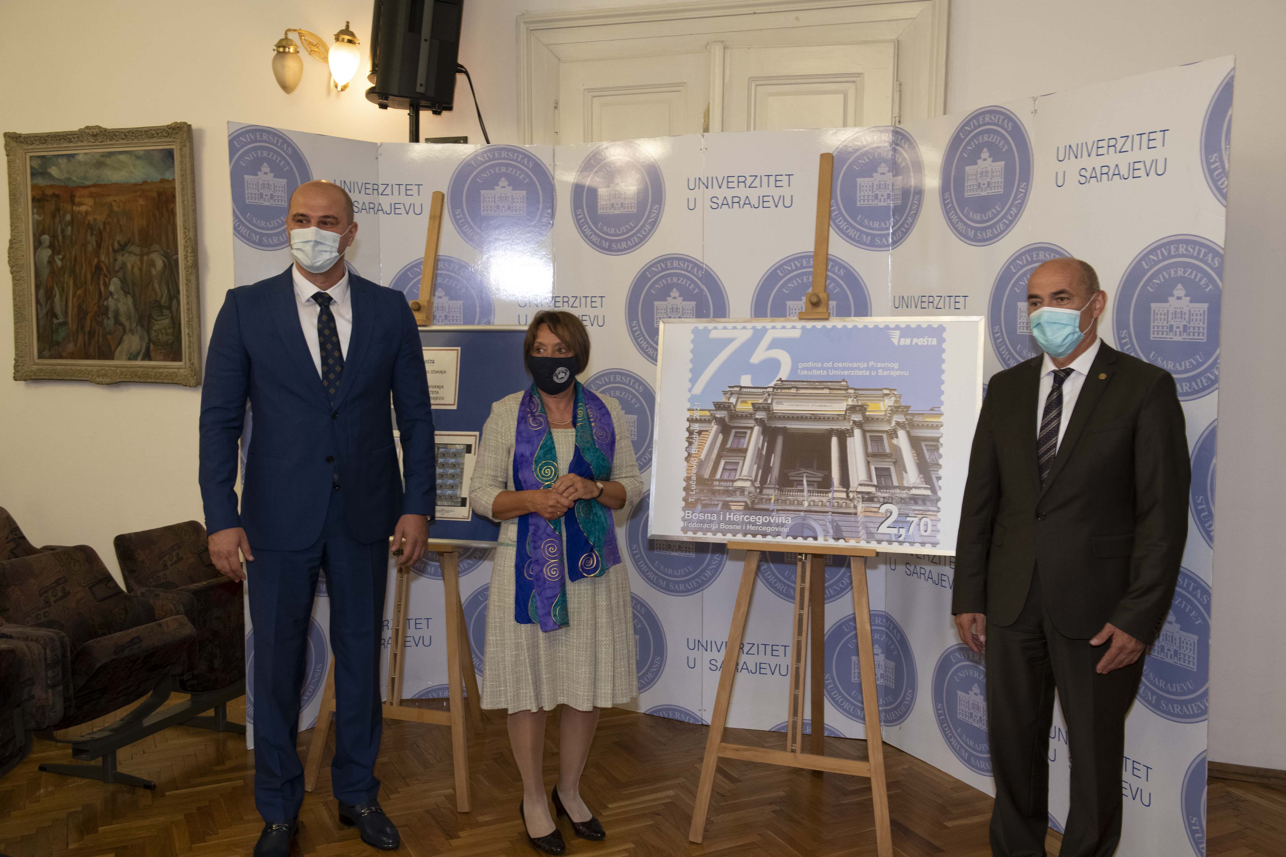 Rektor Univerziteta u Sarajevu, prof. dr. Rifat Škrijelj izrazio je zadovoljstvo što se upravo promocijom poštanske marke obilježava 75 godina od osnivanja Pravnog fakulteta Univerziteta u Sarajevu.