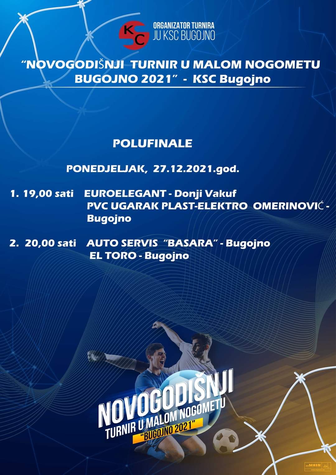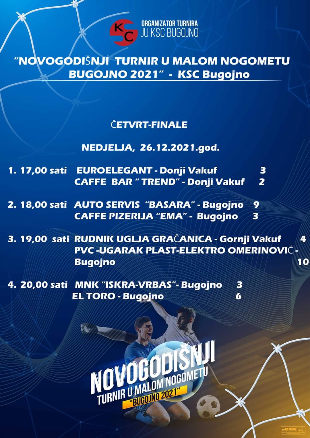 Rezultati četvrfinalnih i raspored polufinalnih utakmica Novogodišnjeg turnira “Bugojno 2021”.