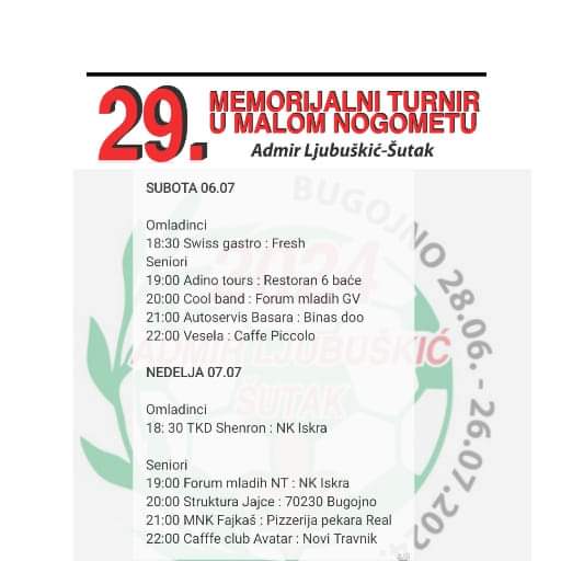 Rezultati i raspored utakmica Šutkovog memorijala: