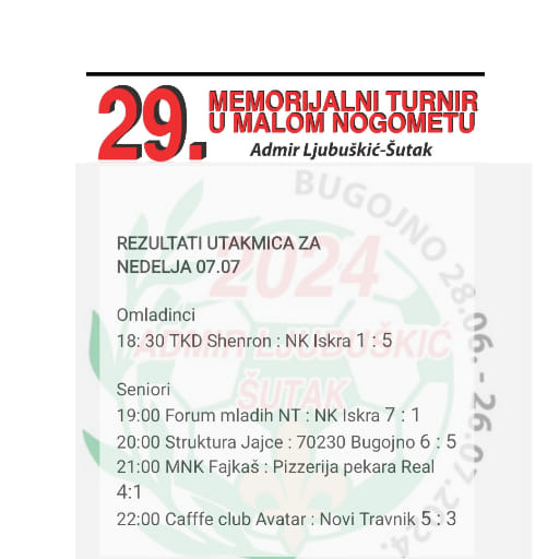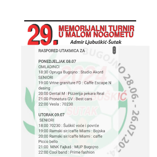 Rezultati utakmica za nedjelju i raspored utakmica Šutkovog memorijala