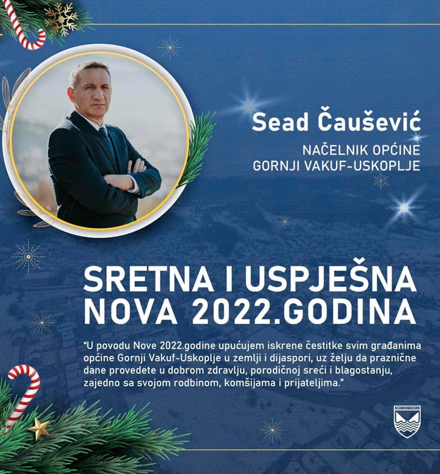 U povodu Nove 2022. godine upućujem iskrene čestitke svim građanima Gornji Vakuf-Uskoplje u zemlji i dijaspori, uz želju da praznične dane provedete u dobrom zdravlju, porodičnoj sreći i blagostanju, zajedno sa svojom rodbinom, komšijama i prijateljima.