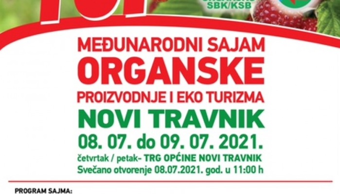 Općina Novi Travnik i Razvojno-Resursni centar za ruralni razvoj – ORGANSKO SBK/KSB od 8. do 9. jula organiziraju 15. Međunarodni sajam organske proizvodnje i eko turizma “Dani Maline 2021”.
