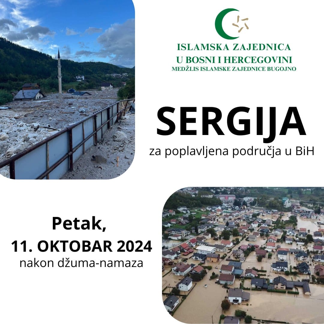 Rijaset Islamske zajednice u Bosni i Hercegovini donio je odluku da se u svim džamijama u domovini i dijaspori u petak, 11. oktobra, nakon džuma-namaza, organizira sergija za pomoć stanovništvu ugroženom i pogođenom u poplavama koje su zadesile Bosnu i Hercegovinu.