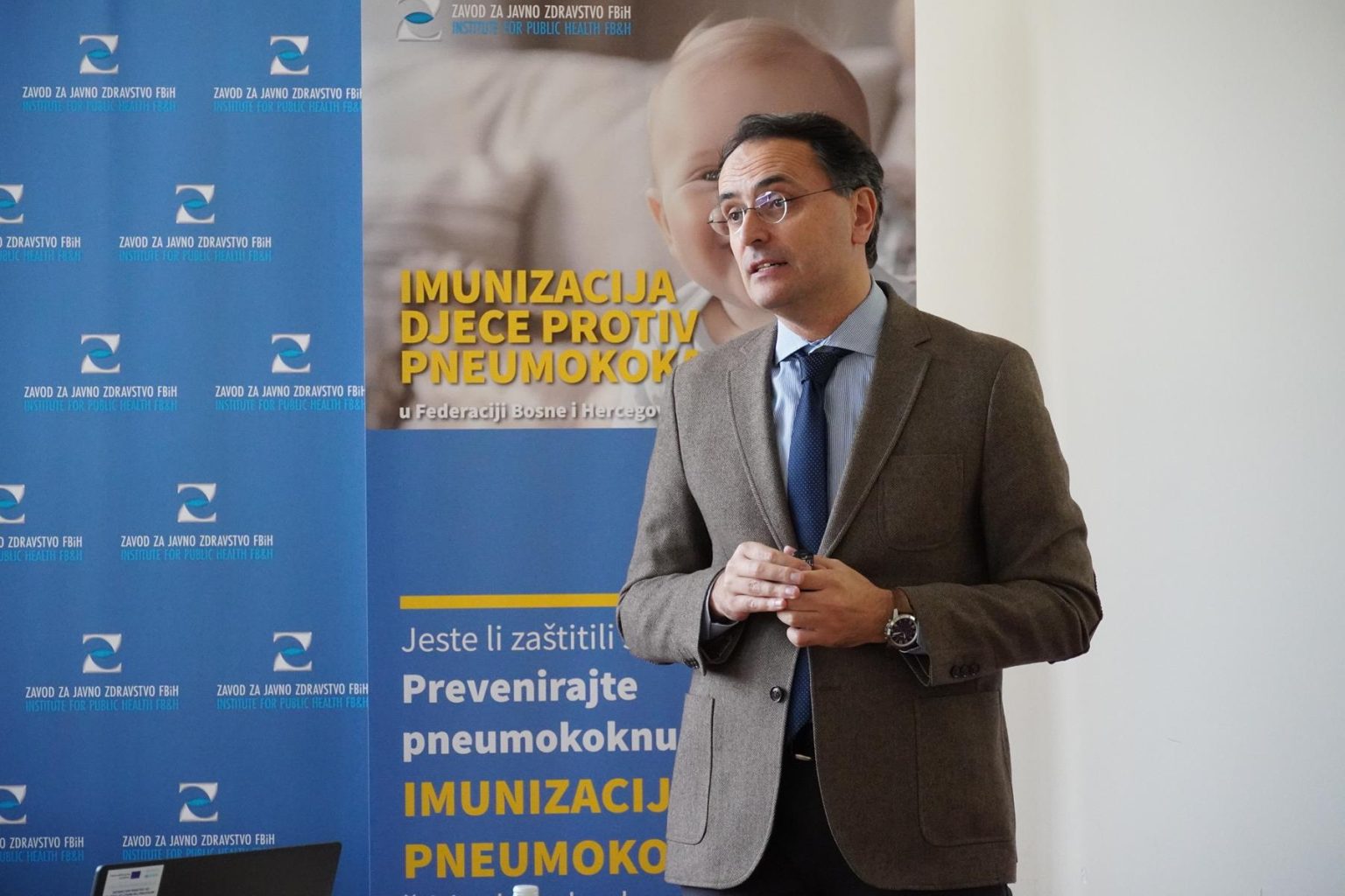 Prof. dr. sc. prim. Sanjin Musa, dr. med., voditelj Službe za epidemiologiju zaraznih bolesti Zavoda za javno zdravstvo FBIH također je istaknuo važnost uvođenja pneumokoknog cjepiva u redoviti imunizacijski program u FBIH.