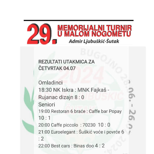 Završen sedmi dan Šutkovog memorijala, pobjednici NK Iskra, Restoran 6 braće, Caffe Piccolo, Euroelegant i Best cars