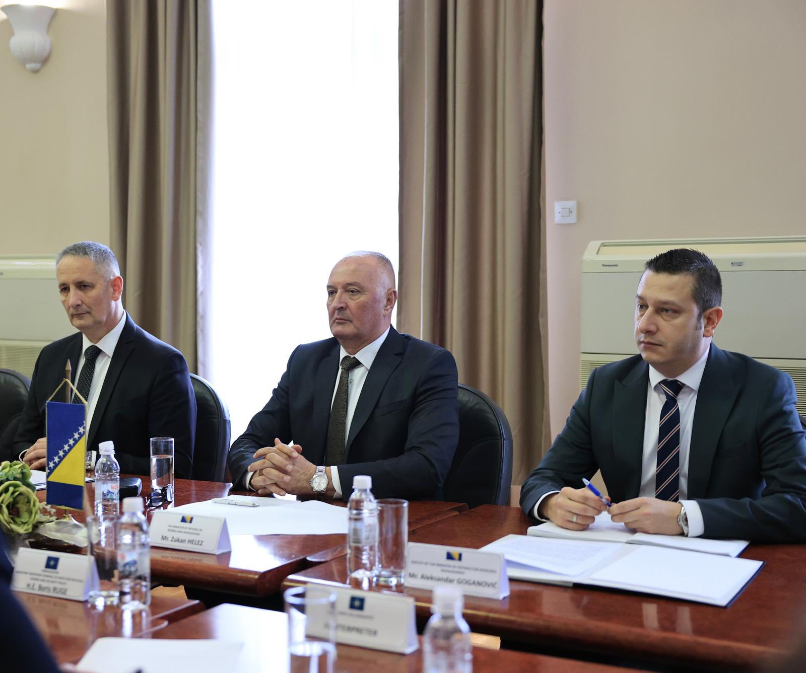 Ministar odbrane BiH Zukan Helez u službenu posjetu primio Borisa Rugea, pomoćnika generalnog sekretara NATO-a za politička pitanja i sigurnosnu politiku, te komandanta NATO Štaba Sarajevo, brigadnog generala Matthewa Valasa. Tokom sastanka potvrđena je izuzetno snažna, sadržajna i kontinuirana saradnja Bosne i Hercegovine i NATO saveza, zasnovana na međusobnom povjerenju, zajedničkom razumijevanju savremenih sigurnosnih izazova i jasno izraženoj političkoj volji da se ta saradnja dodatno unaprijedi.